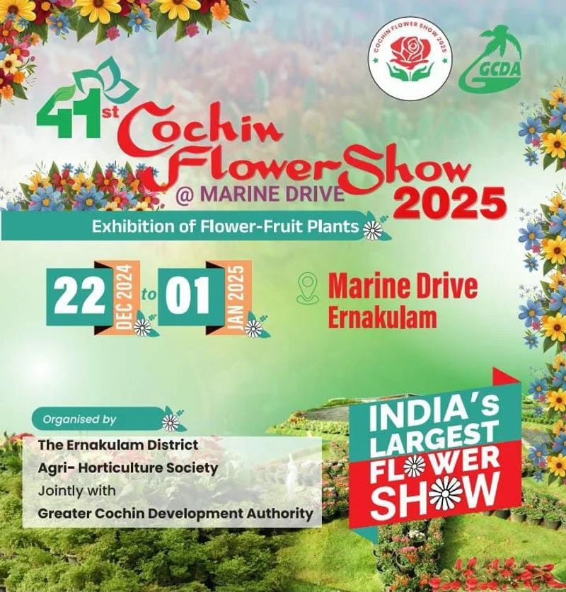 ഇന്ത്യയിലെ ഏറ്റവും വലിയ ഫ്ലവർ ഷോയ്ക്ക് കൊച്ചിൻ മറൈൻഡ്രൈവിൽ ഡിസംബർ 22ന് തുടക്കമാകുന്നു. ജില്ല അഗ്രി ഹോർട്ടികൾച്ചർ സൊസൈറ്റിയും,ഗ്രേറ്റർ കൊച്ചി ഡെവലപ്മെന്റ് അതോറിറ്റി (ജിസിഡിഎ)യും ചേർന്നാണ് ഫ്ലവർ ഷോ നടത്തുന്നത്. ഡിസംബർ 22 മുതൽ ജനുവരി 1 വരെയാണ് ഫ്ലവർ ഷോ സംഘടിപ്പിക്കുന്നത്.54000 ചതുരശ്ര അടിയിൽ കലാപരമായി ഒരുക്കുന്ന പൂച്ചെടികളുടെയും പൂക്കളുടെയും പ്രദർശനം ഇന്ത്യയിലെ തന്നെ ഏറ്റവും വലുപ്പമുള്ളതായിരിക്കും.