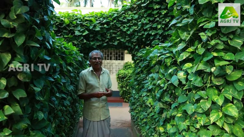 പച്ചിലകൾ അതിരടയാളങ്ങൾ തീർത്തപ്പോൾ ഇന്ന് ഇതൊരു ജൈവ വീടാണ്. നാലടിയോളം ഉയരത്തിലും രണ്ടടി വീതിയിലും 80 മീറ്റർ നീളത്തിലും ആണ് മണി പ്ലാൻറ് കൊണ്ട് തീർത്ത ഈ മതിൽ വീടിനെ ചുറ്റി നിൽക്കുന്നത്. ഏകദേശം 30 വർഷമായി മണി പ്ലാൻറ് ഇദ്ദേഹം വളർത്തുന്നുണ്ട്. മണി പ്ലാൻറ് മാത്രമല്ല ഒട്ടേറെ ഔഷധസസ്യങ്ങളും വീടിൻറെ ഭംഗി കൂട്ടുന്നു.