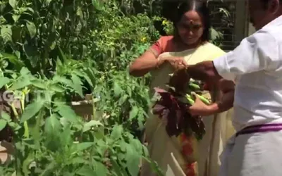 വീടിന്റെ മട്ടുപ്പാവില് ഒരു മനോഹരമായ കൃഷിത്തോട്ടം ഒരുക്കിയിരിക്കുകയാണ് കോഴിക്കോട് ജില്ലയിലെ പുറക്കാട്ടിരിയിലെ ദമ്പതികളായ രവീന്ദ്രന് മാഷും ചിന്നമ്മ ടീച്ചറും. കോളേജ് അധ്യാപകരായിരുന്ന ഇരുവരും റിട്ടയര്മെന്റ് ജീവിതമിപ്പോള് കൃഷിക്കായി മാറ്റിവെച്ചിരിക്കുകയാണ്. വിവിധ തരം പച്ചക്കറികള് കൂടാതെ വാഴയും ഇലഞ്ഞിമരവും വരെ വീടിന്റെ ടെറസില് വളര്ത്തിയെടുത്തിരിക്കുകയാണ് ഈ ദമ്പതികള്.